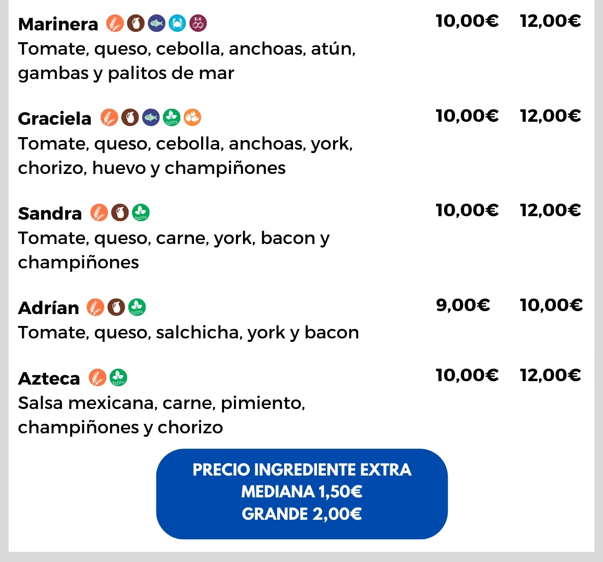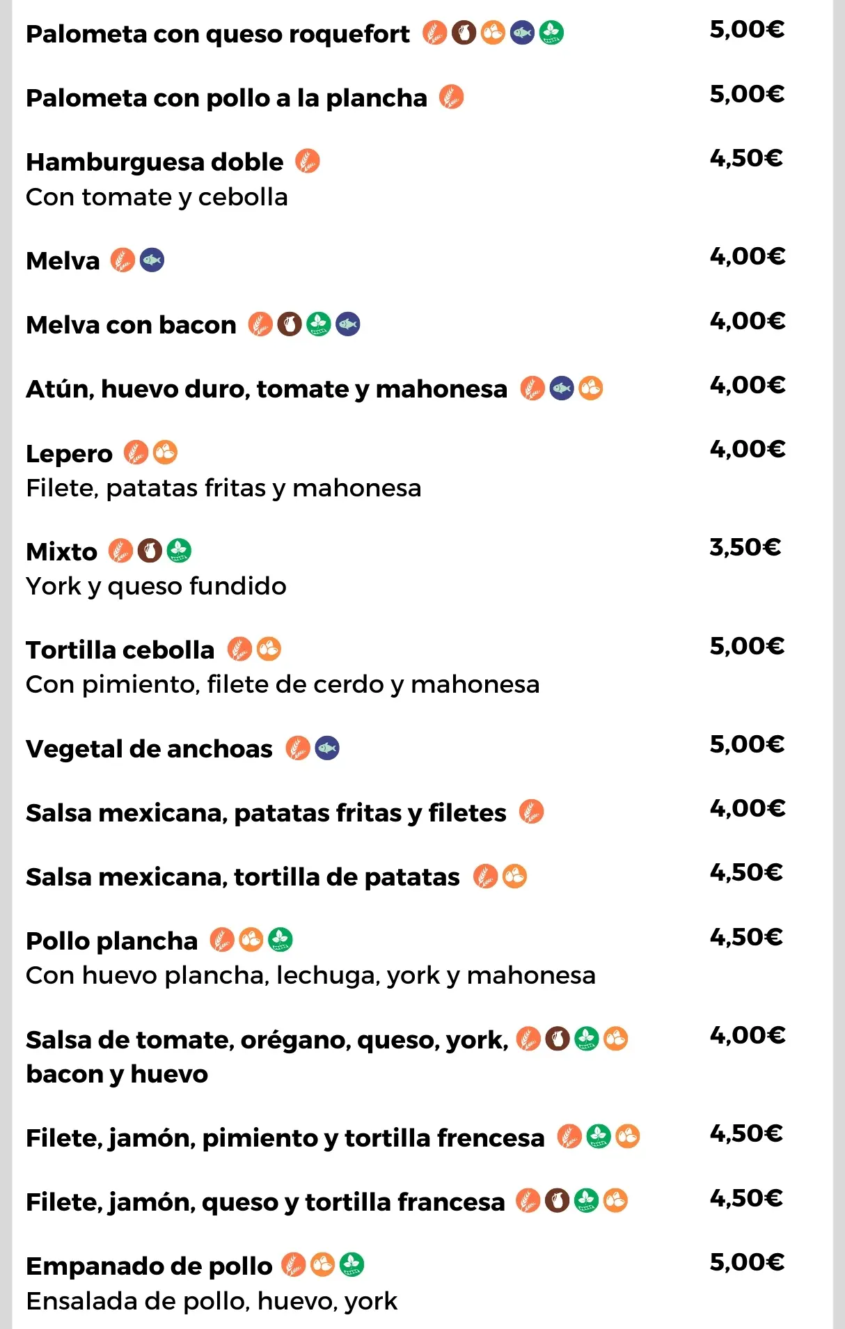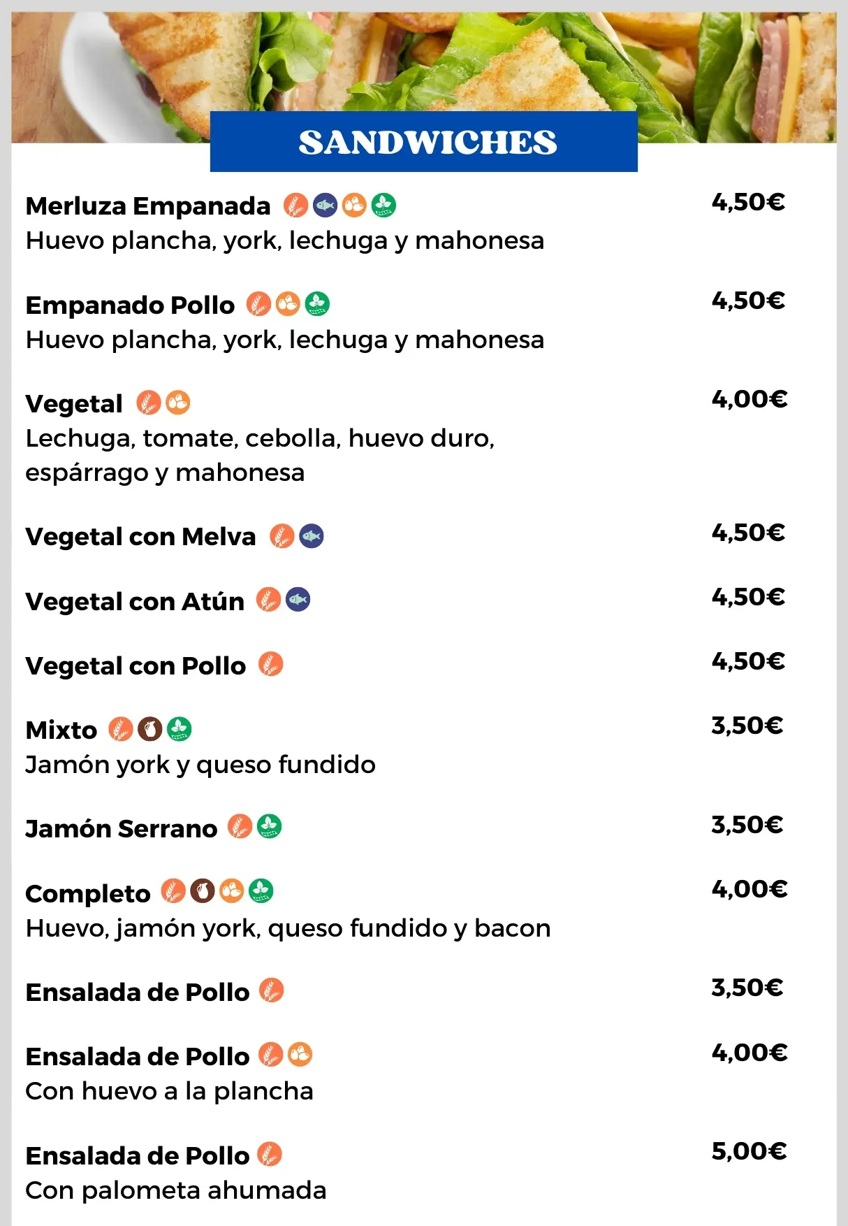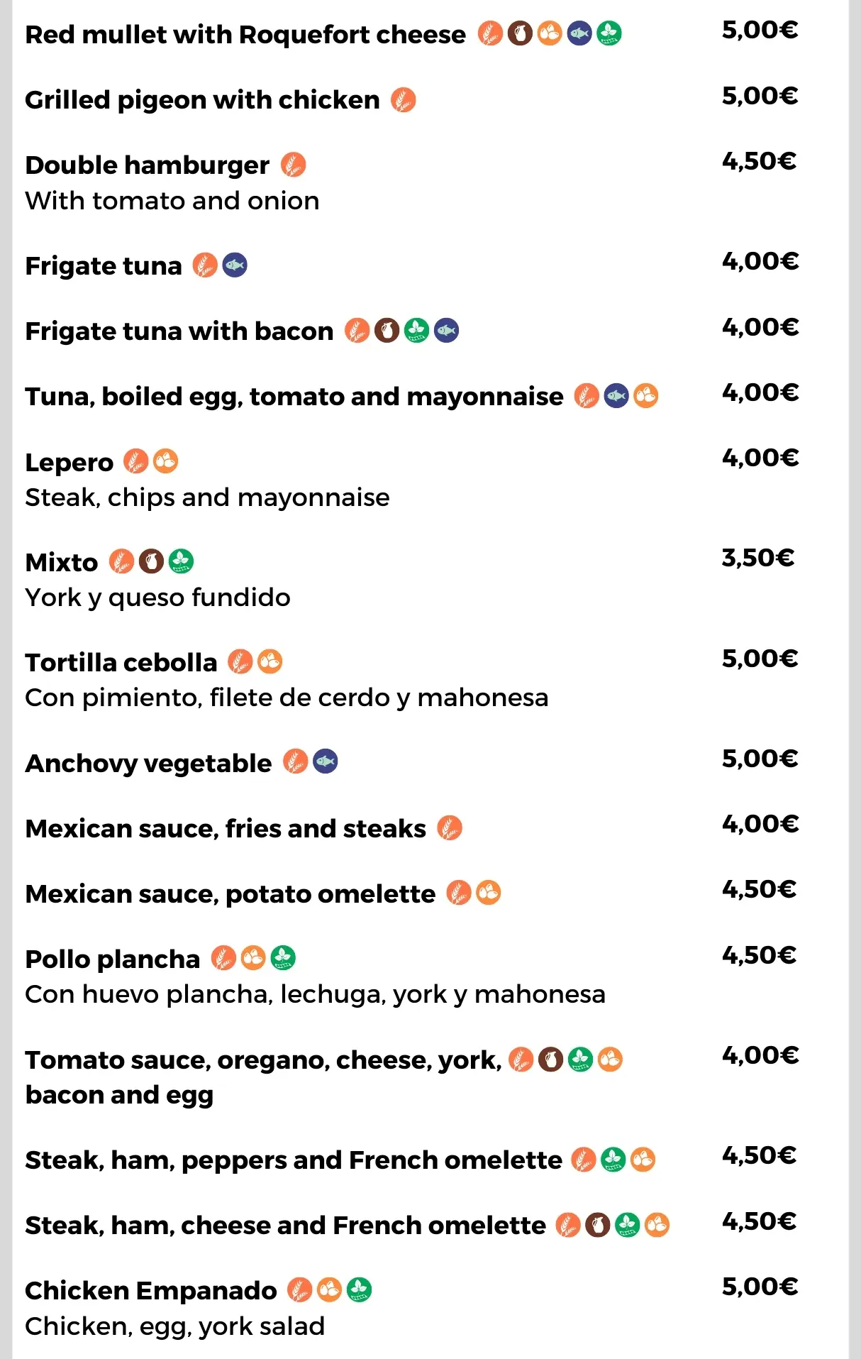 Aquí podrás encontrar la carta tanto en inglés como en español, además garantizamos siempre que los precios están actualizados y los alergenos indicados en cada plato.